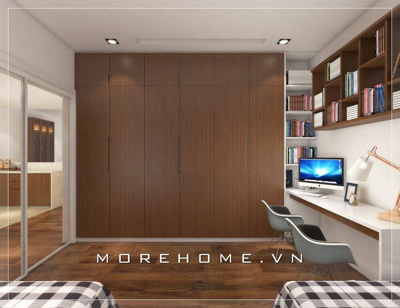 Mẫu tủ áo hiện đại kết hợp kệ sách đầy tiện nghi và ngăn nắp