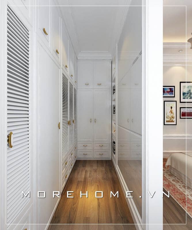 Tủ quần áo cánh mở hiện đại được thiết kế âm tường tạo sự ngăn nắp và gọn gàng hơn cho căn phòng ngủ
