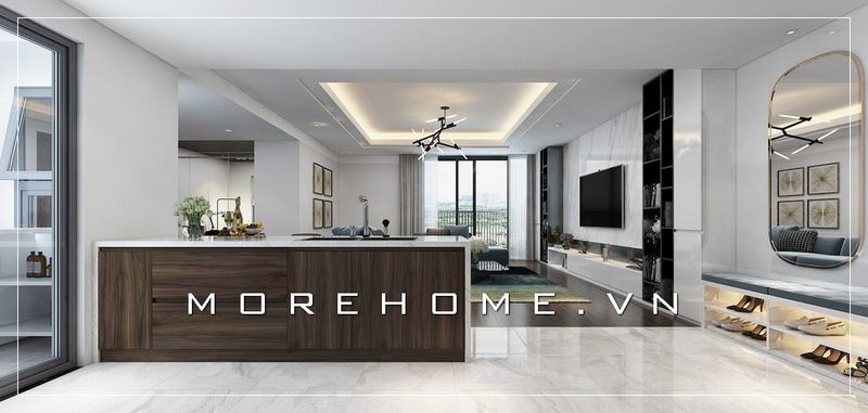 Mẫu đá ốp mặt bàn đảo bếp màu trắng tinh tế