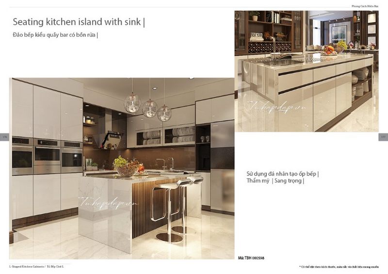 Đá nhân tạo được các gia chủ lựa chọn nhiều khi thiết kế phòng bếp theo phong cách hiện đại vì những lợi ích ưu Việt như: độ bền, chịu nhiệt, thẩm mỹ,.... từ bàn đảo, mặt bàn bếp đến sàn nhà.