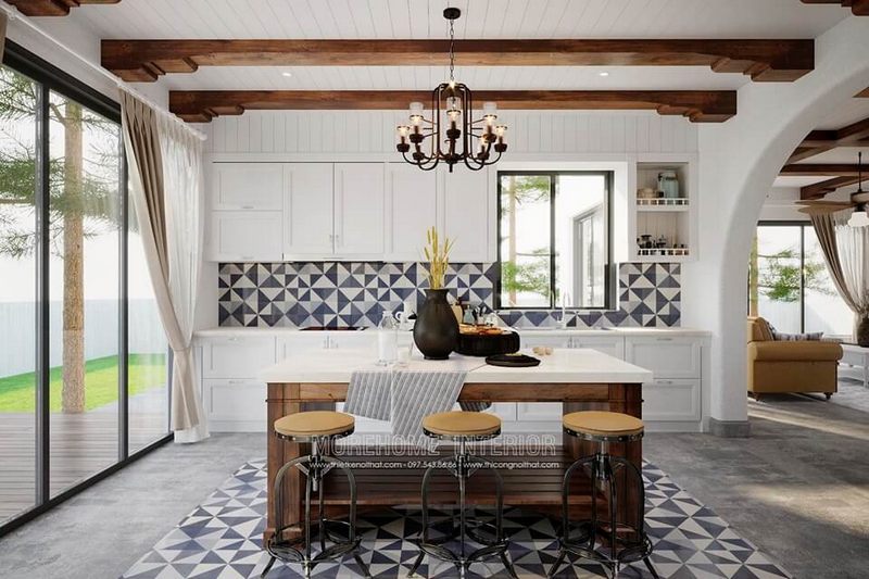 Mẫu bàn đảo bếp gỗ tự nhiên hiện đại, tiện nghi cho phòng bếp