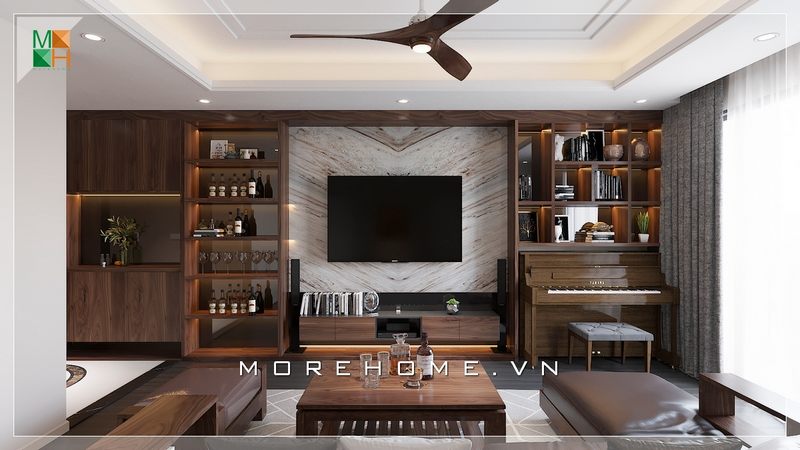 trang trí nội thất gỗ tự nhiên cho phòng khách chung cư ấn tượng và sang trọng cho không gian ấm cúng