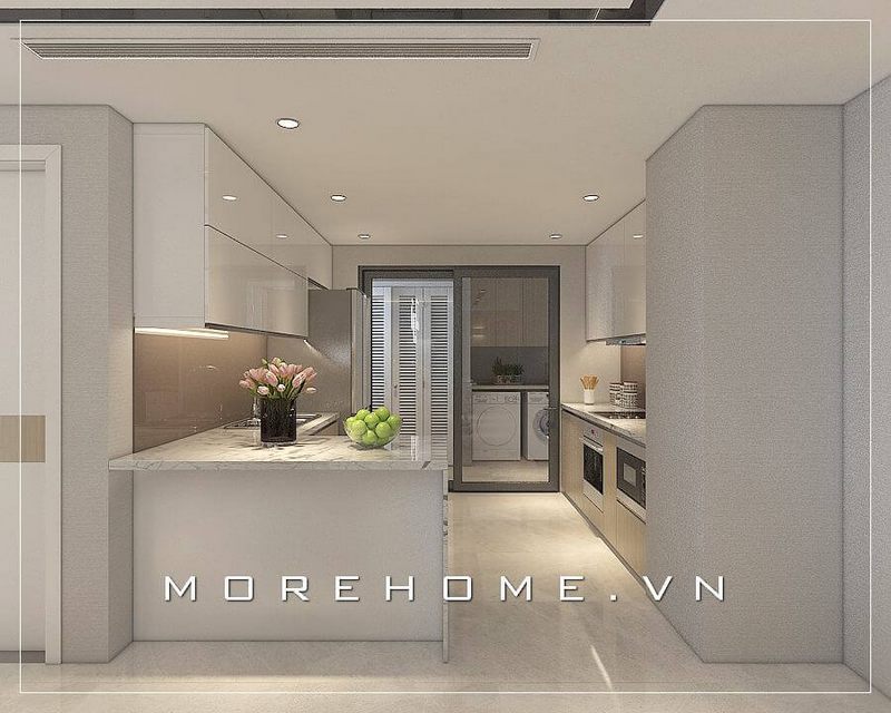 Thiết kế nội thất phòng bếp chung cư theo phong cách hiện đại, đơn giản và tiện nghi