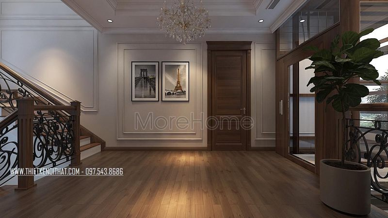 trang trí hành lang điểm cầu gắn kết giữa các không gian phòng với nhau, mang phong thủy riêng cho ngôi nhà