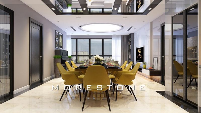 Sử dụng đá tự nhiên để làm lát sàn giúp tạo nên không gian căn nhà có vẻ đẹp sang trọng và bóng loáng.